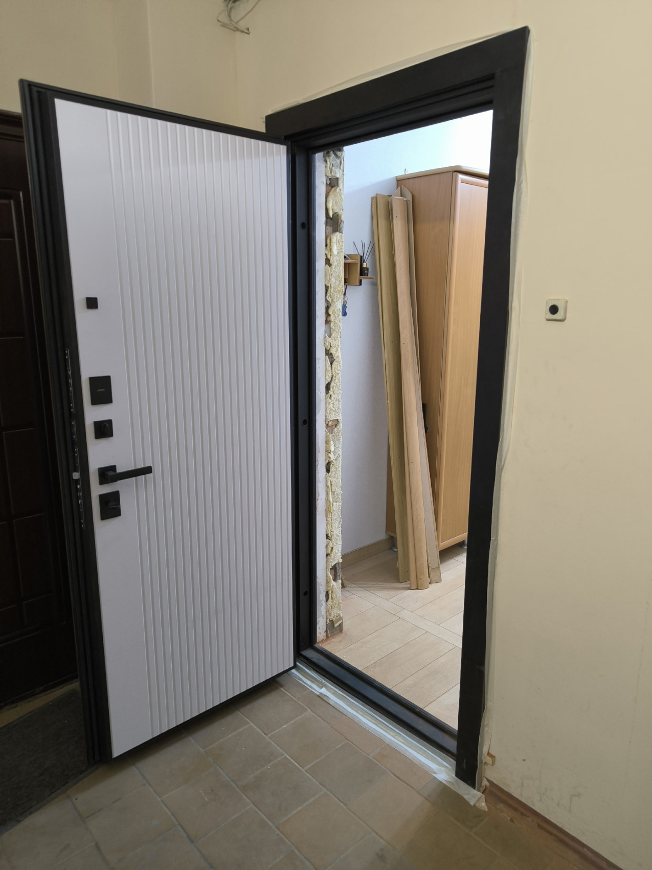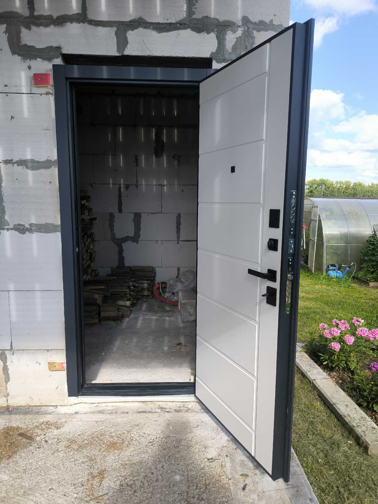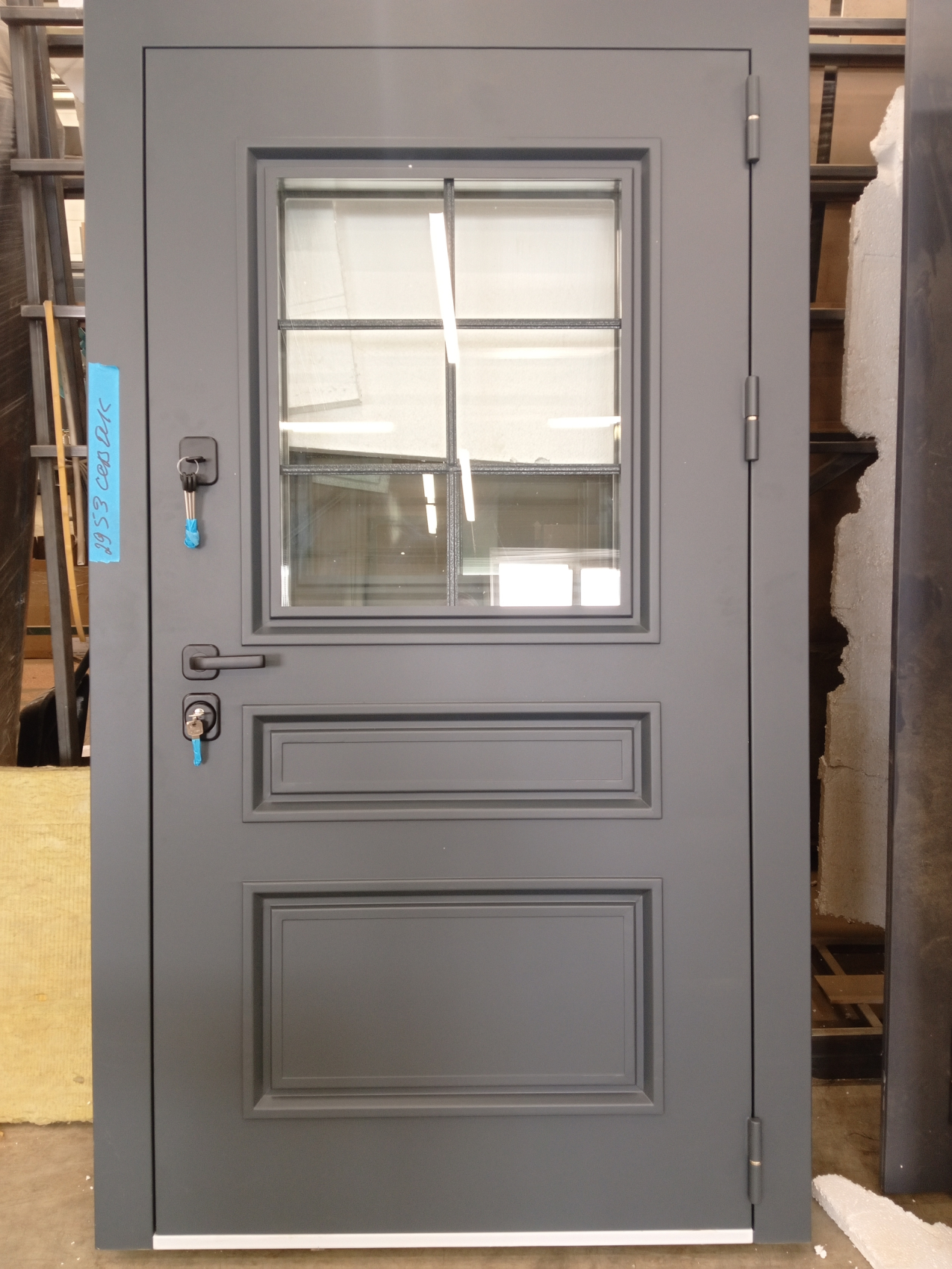 Металлическая дверь с верхней вставкой легко стыкуется с доборами и наличниками: швы скрыты, периметр уплотнён, контур выглядит аккуратно и долговечно даже в интенсивной эксплуатации.
