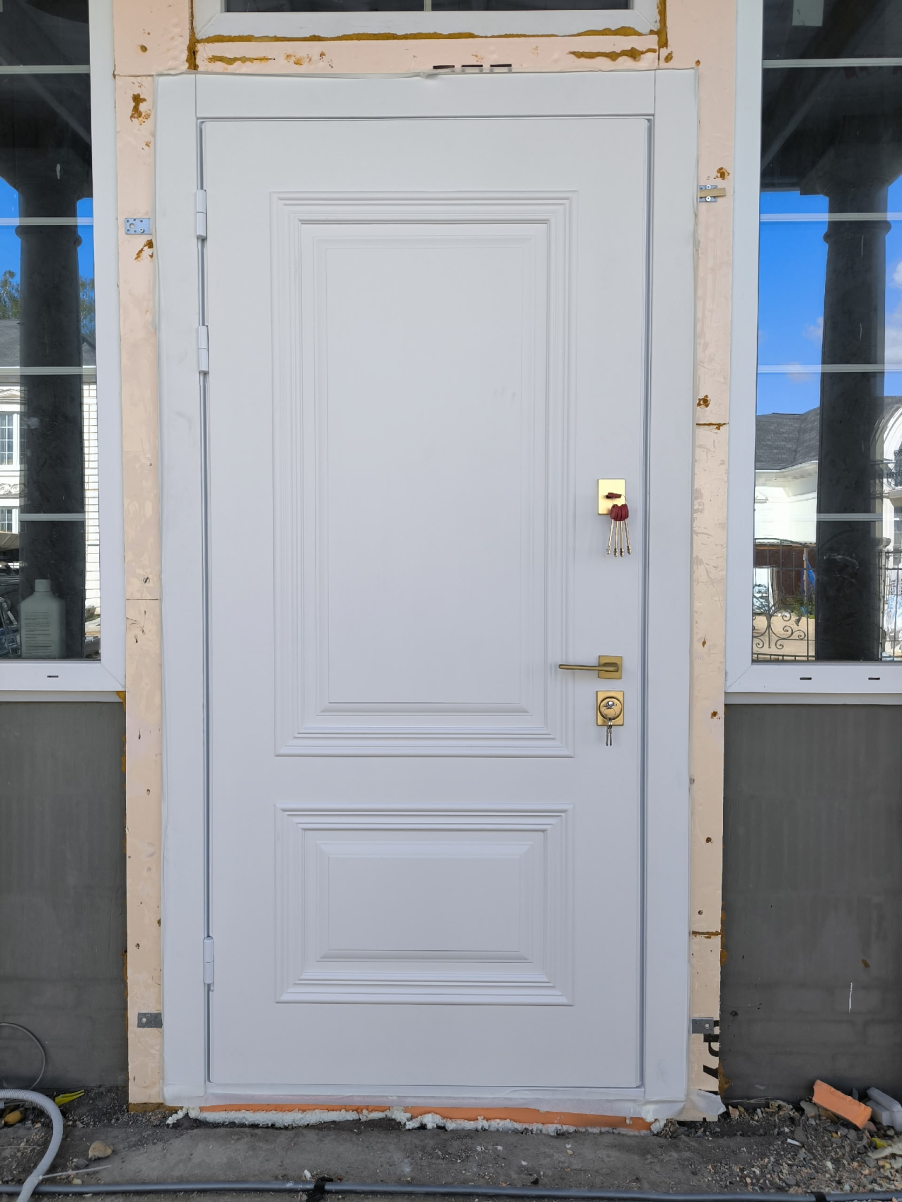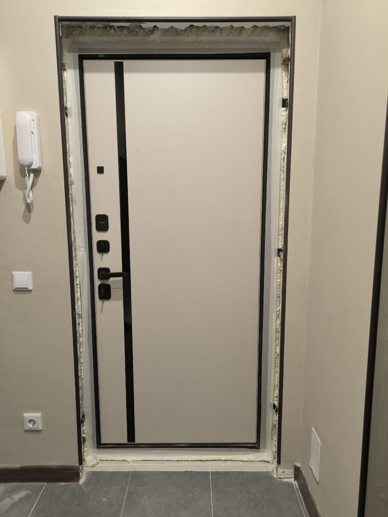 Металлическая входная дверь в квартиру чёрная №37 — это надежный выбор для установки в квартире, даче, частном доме, офисе или подъезде. Ее прочная конструкция из профильных труб 50x25 мм и холоднокатанной стали толщиной 2 мм обеспечивает отличную устойчивость к внешним воздействиям. Внешняя отделка в черном цвете придает двери современный и стильный вид, а внутренняя отделка аккуратно завершает её внешний вид. Уплотнение с двумя контурами резинового уплотнителя защищает от влаги и пыли, хотя терморазрыв отсутствует. Дверь оборудована надежными замками «Просам» и «Мосрентген», каждый с тремя ригелями, что гарантирует высокий уровень безопасности. В добавок к стандартной комплектации, можно выбрать дополнительные элементы — зеркало, стеклопакет или кованые детали, а также установить видеодомофон.